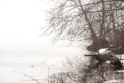 Springtime seems to be coming early if one would include this morning. A heavy fog was over all the area. I went out to enjoy some of this weather. My walk eventually found me along the Allegheny River. The area I was walking had complete ice coverage. The fog was dense that I couldn’t see across the water. However, along the shoreline the weight of the ice had caused a crack allowing for river water to emerge to the shoreline at many places. This allowed for the Beavers to emerge to the bank to eat fresh bark. Old Beaver tracks for common in places.