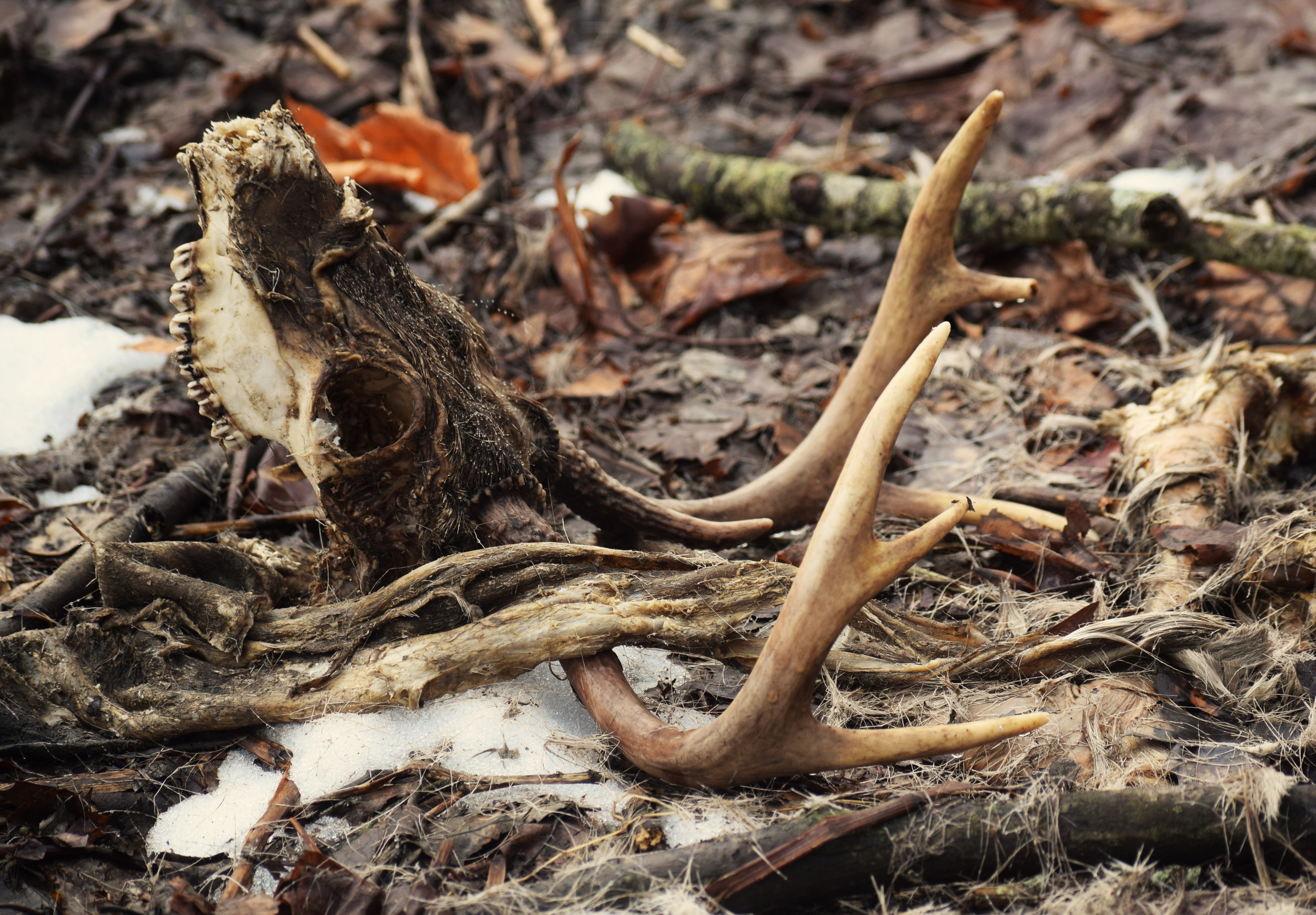 I found the remains of a nice eight-point buck I wondered what had happened for this buck to meet his demise. A shot that went bad. A person not following up a shot, A natural accident or disease. I will never know.