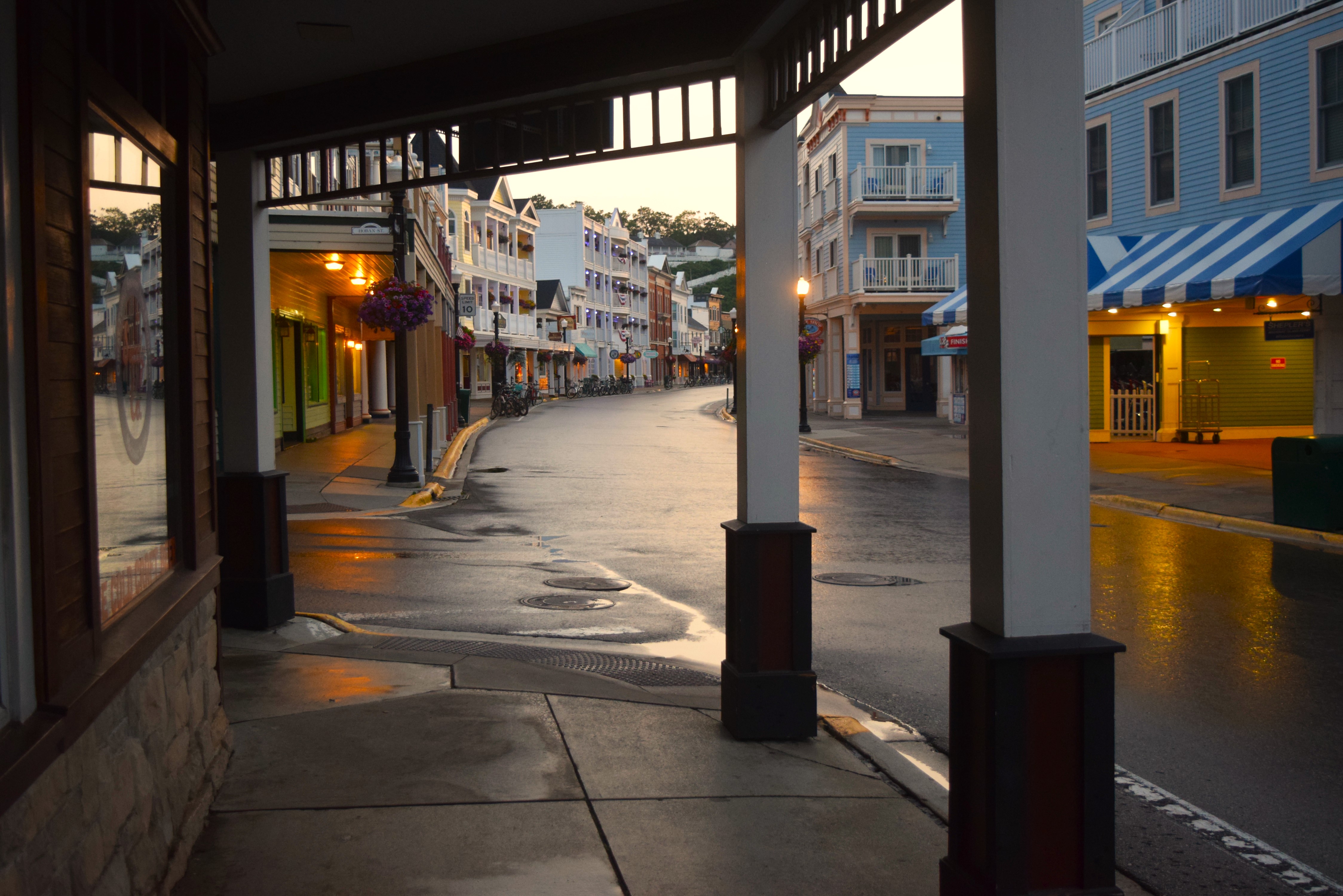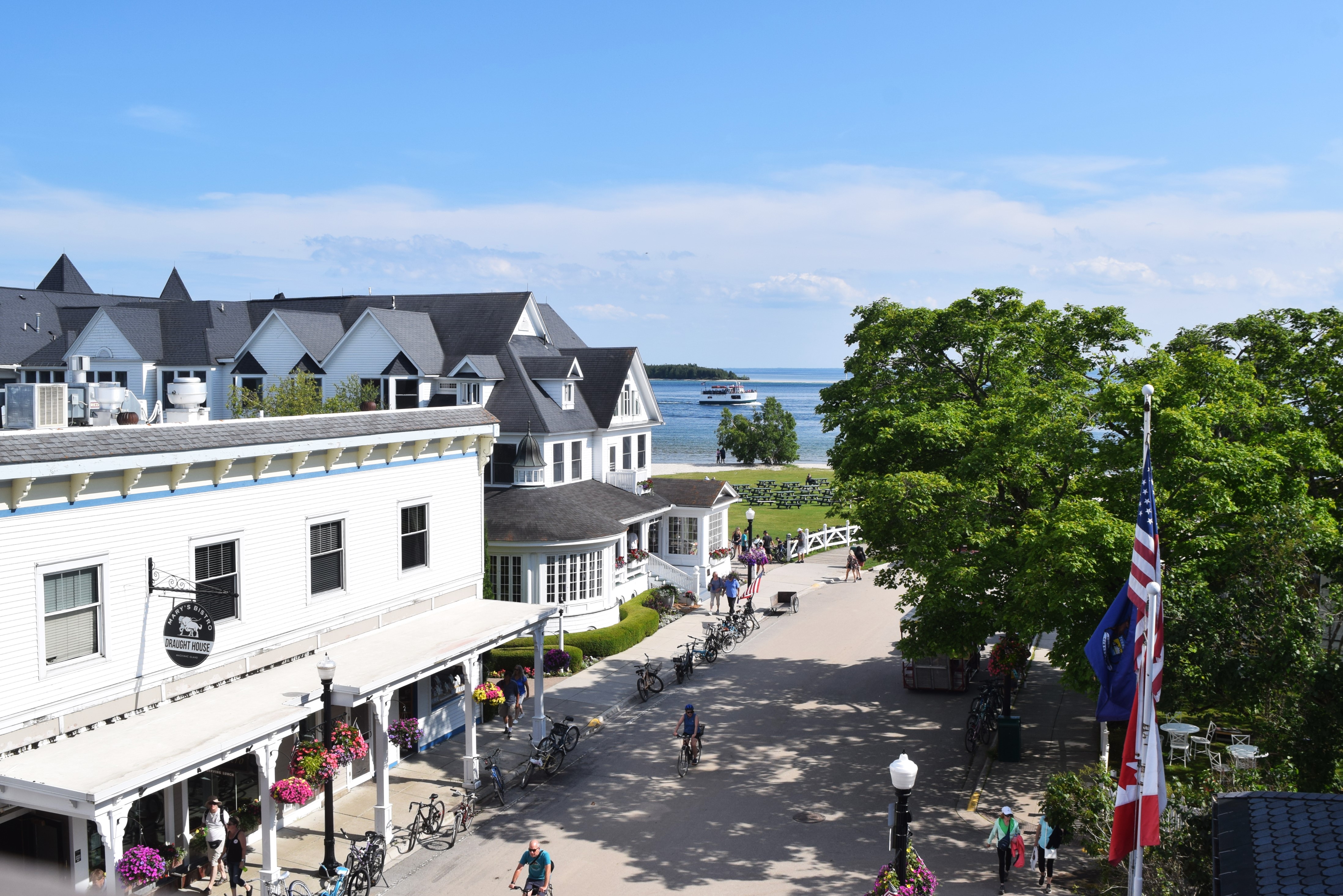 From our third-floor balcony. Notice the Fort Mackinac above the streets.