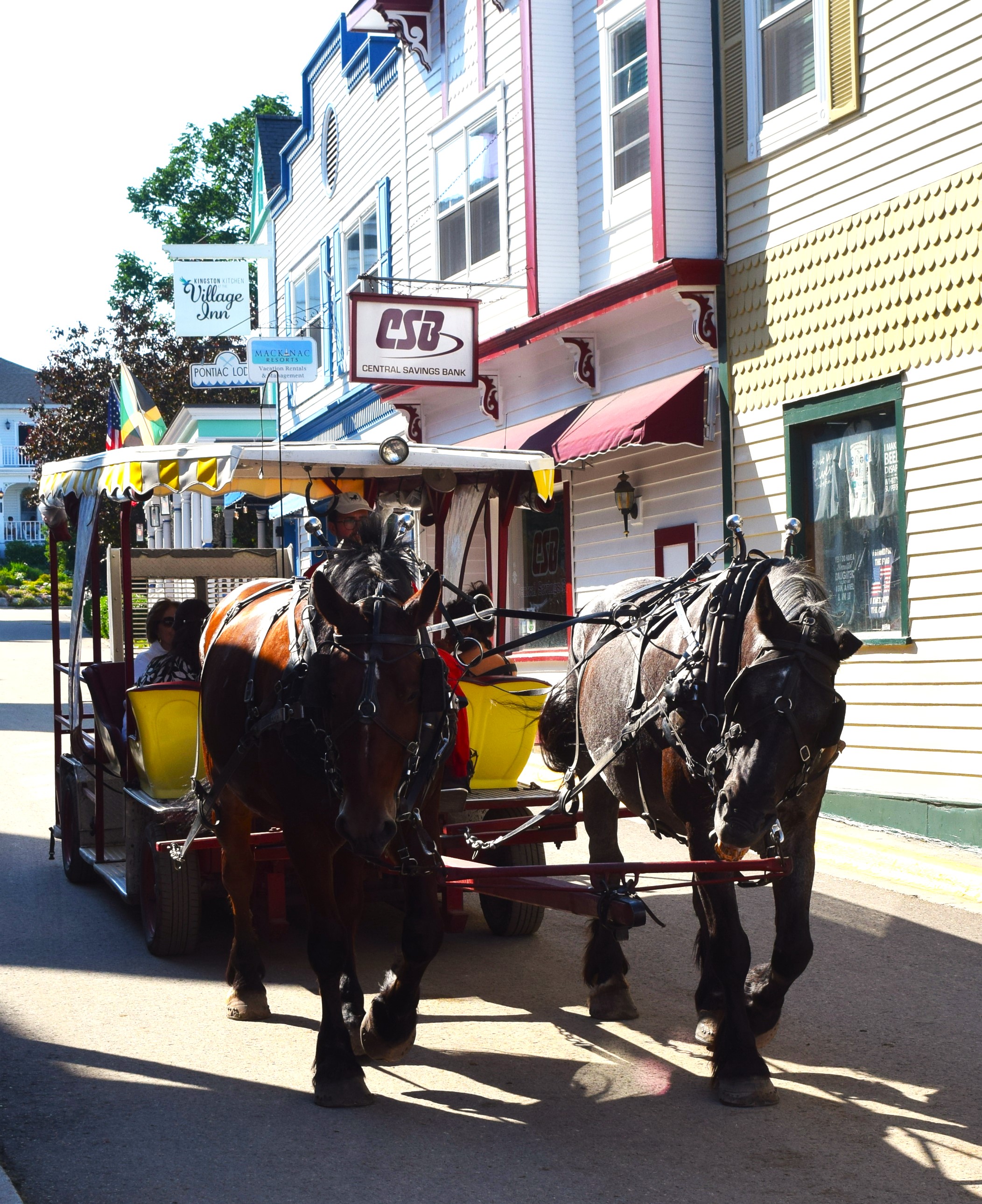 Laurie and I spent some time on Mackinac Island recently for a getaway. Some interesting points about the island are there are no cars allowed on the island. This law was adapted in 1898. Besides that fact one has to wonder how the cars were originally present. There is no bridge to the island. So, this would mean even in that time any cars would need to be had been taken across by ferry. This was how we ventured to be on the island. Ferry boats schedule routine trips through the waters of Lake Huron. North of this island the Mackinac Bridge covers a long distance over the waters. I was told on windy days the bridge sways approximately fifteen feet.