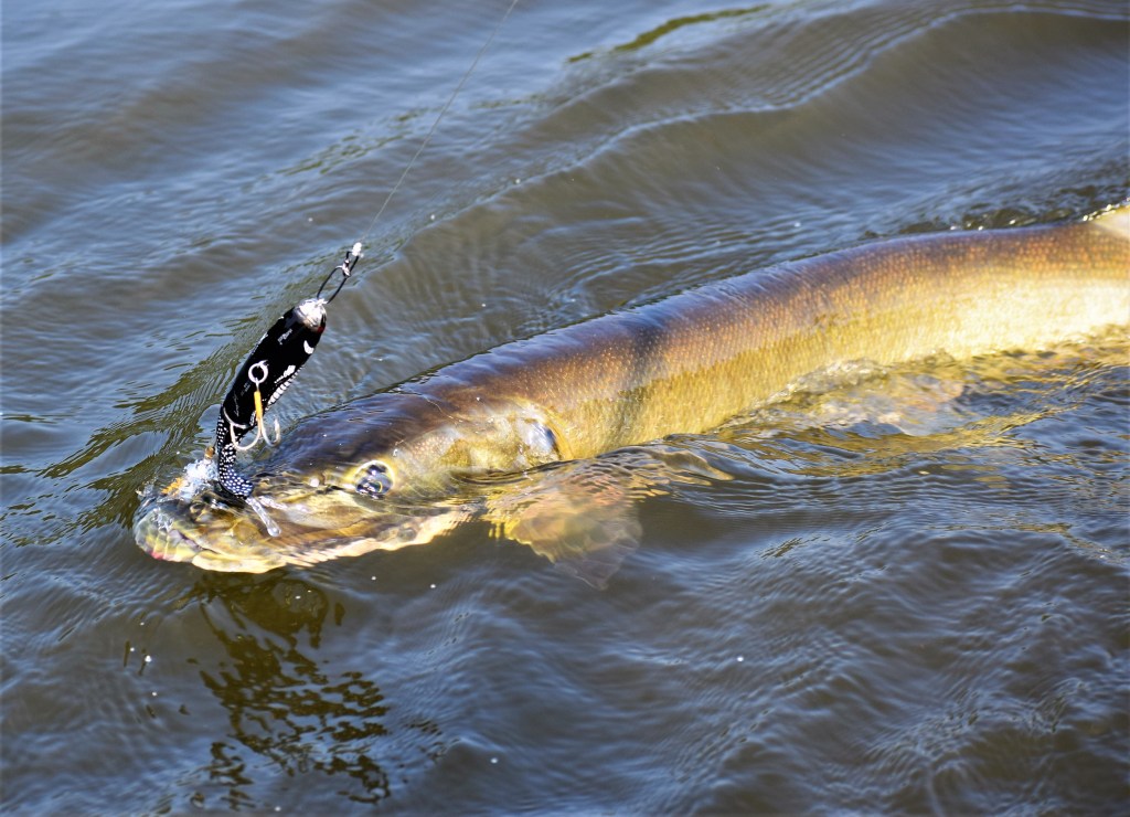 We continued with surface lures when I had a sixth-sense about me. I, somehow, knew I was going to get a fish with a cast and a millisecond later a Muskie grabbed my lure and the battle began. It is always a great experience to battle a Muskie.