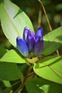 I noticed a vivid blue partially hidden among the various wetland grasses. The blue was from a native wildflower known as the Bottle Gentian. (See photo above.)