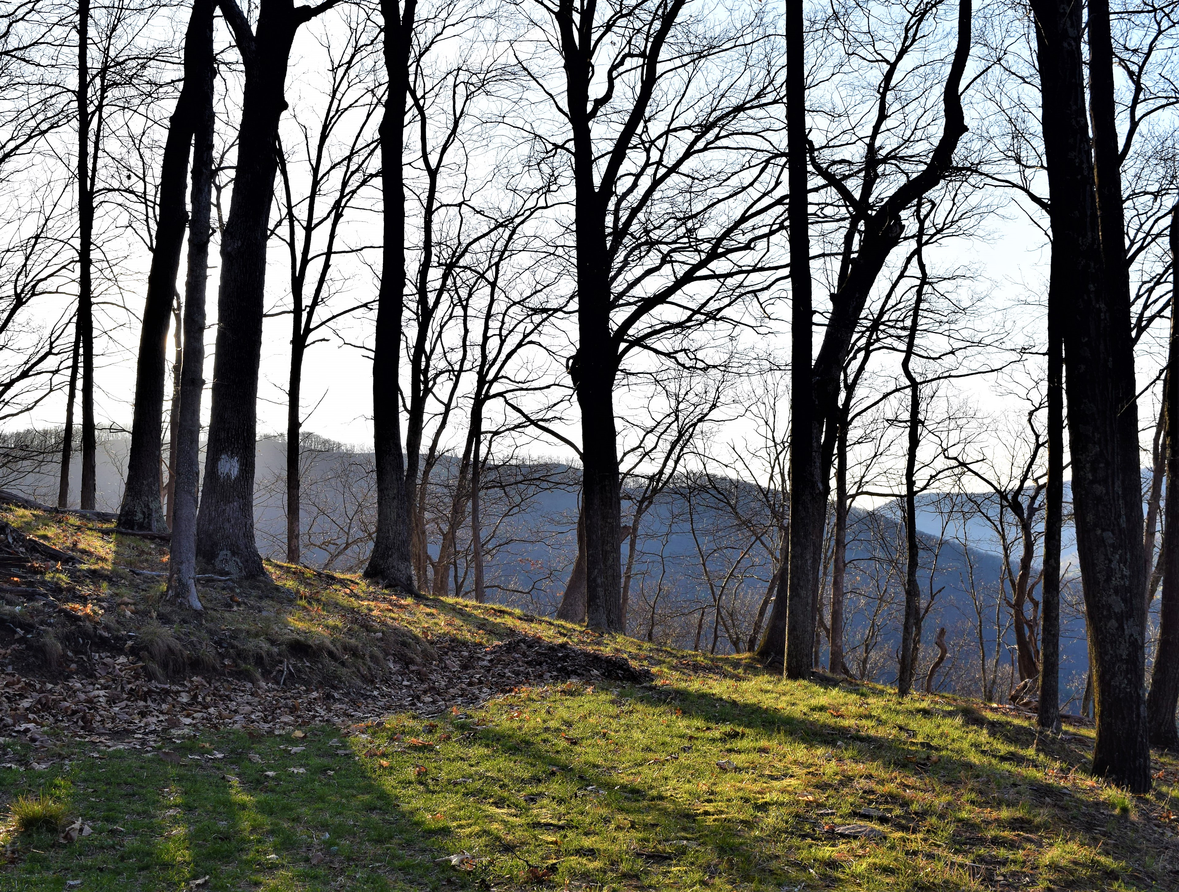 I followed old logging trails at times. These trails often went diagonally upslope in a zig-zag method. Even so the mountain was steep! My hopes was to reach the top in a timely manner, also I wanted to capture photos of the rising sun against the mountain tops. The hollows in darkened shadows against an illuminating sunrise can make for great photos.