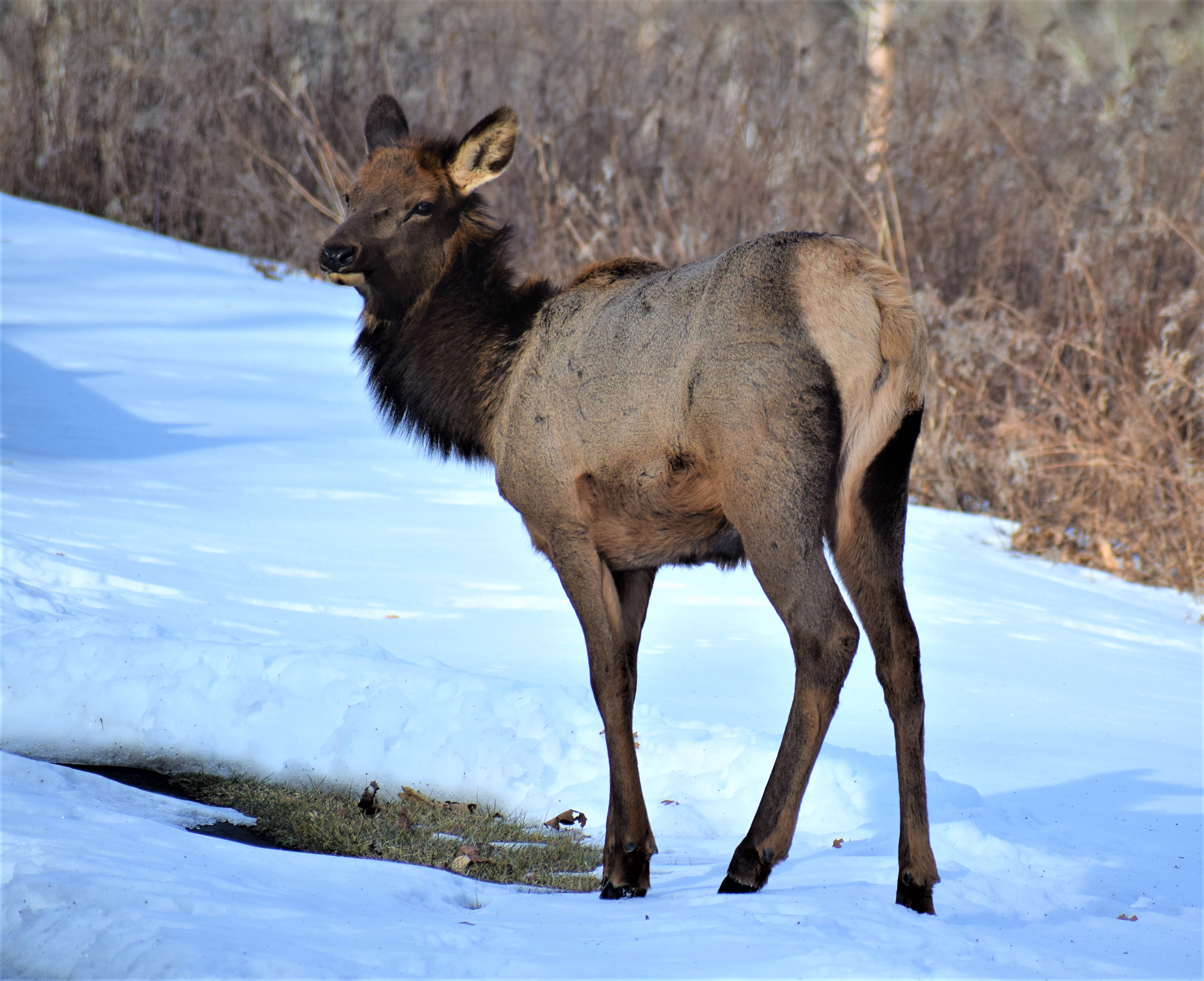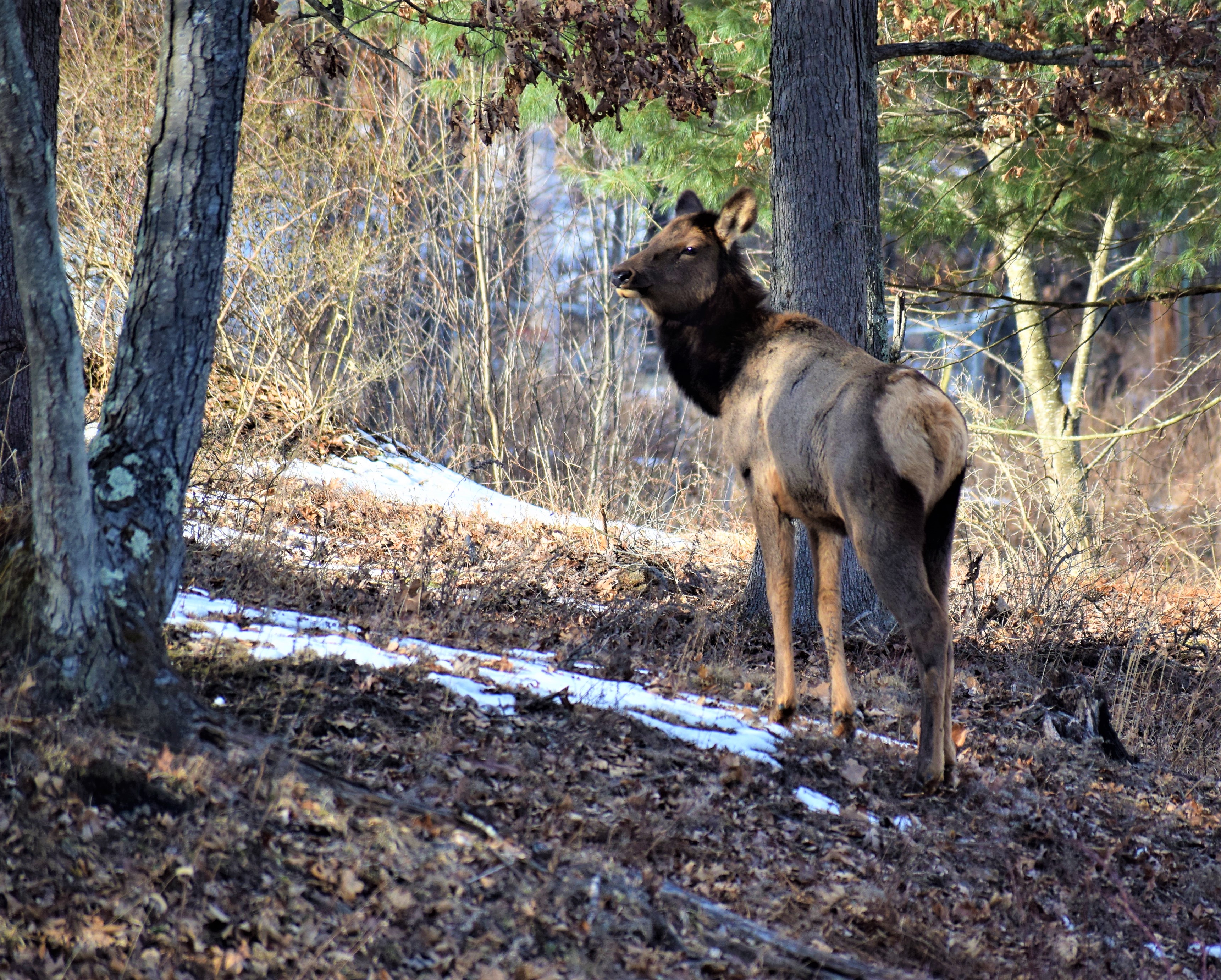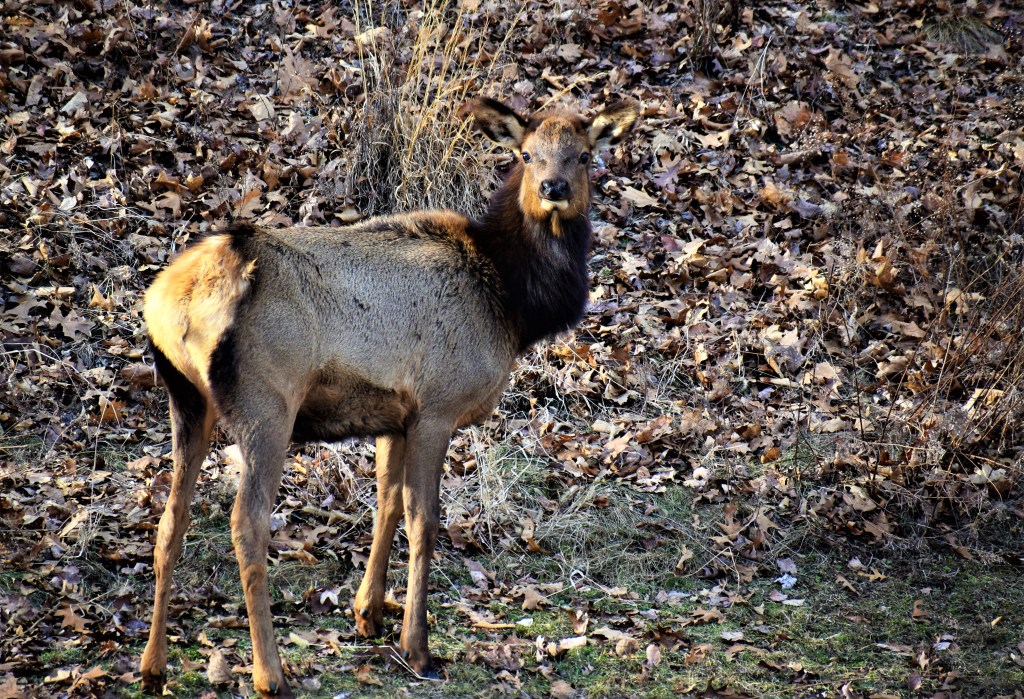 While staying in Driftwood and the traveling about later I would see two flocks of turkeys, two deer, squirrels, a groundhog walking on frozen snow and about thirty elk. The first day at the Driftwood Senior Center I would watch seven elk feeding and bedding for over two hours. the second evening I watched three elk wandering around eventually crossing the railroad track.